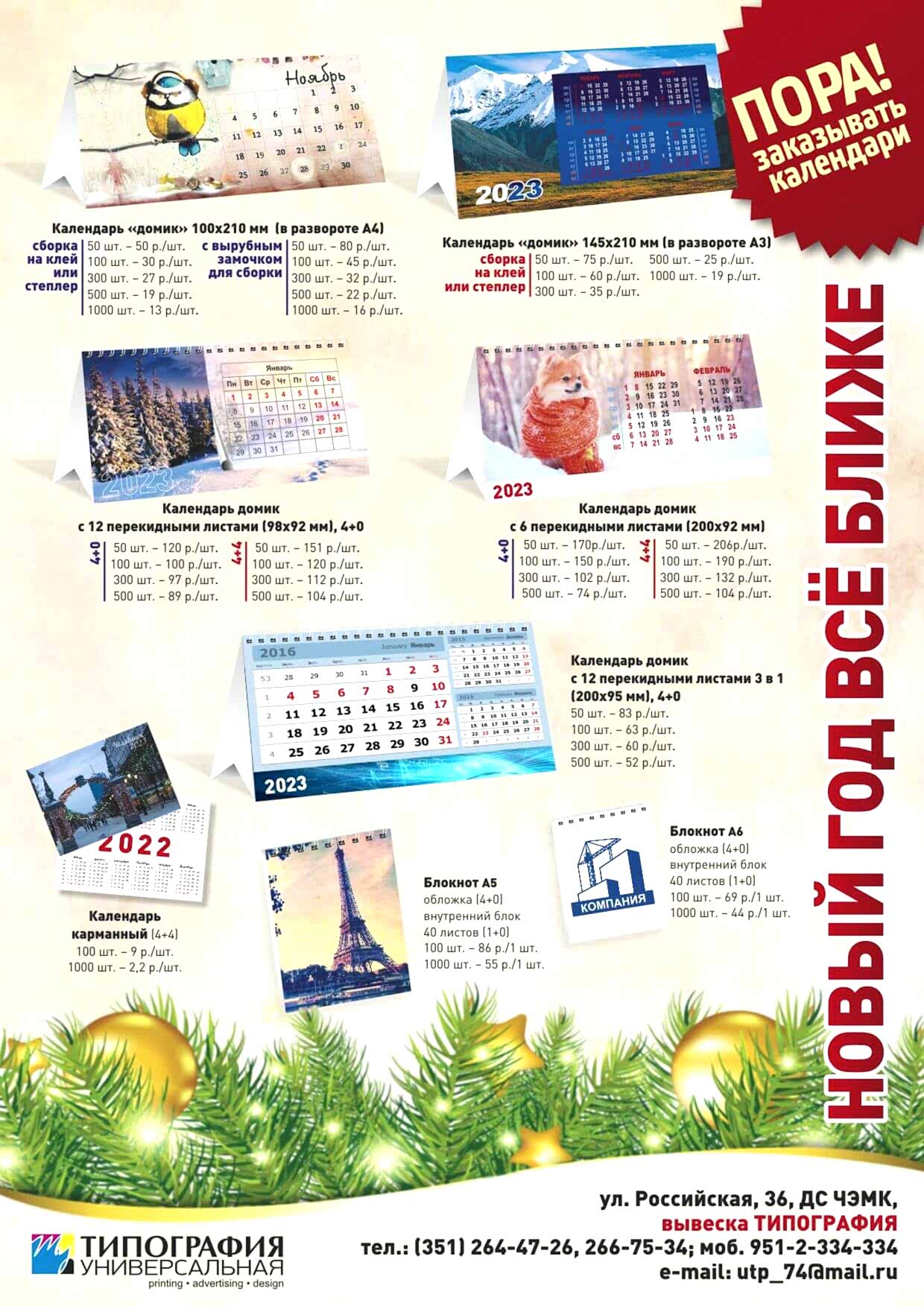«Универсальная типография» изготавливает квартальные календари в Астане по наиболее адекватной цене. Мы используем современное оборудование, сертифицированные расходные материалы и прогрессивные Пинап печати. Это позволяет выпускать качественную полиграфическую продукцию, которая позитивно повлияет на имидж вашего бизнеса. Не упустите возможность купить календарные блоки в Астане мелко- и крупнооптовыми партиями без дополнительных наценок и переплат. Обращайтесь в компанию «Универсальная типография» уже сегодня.