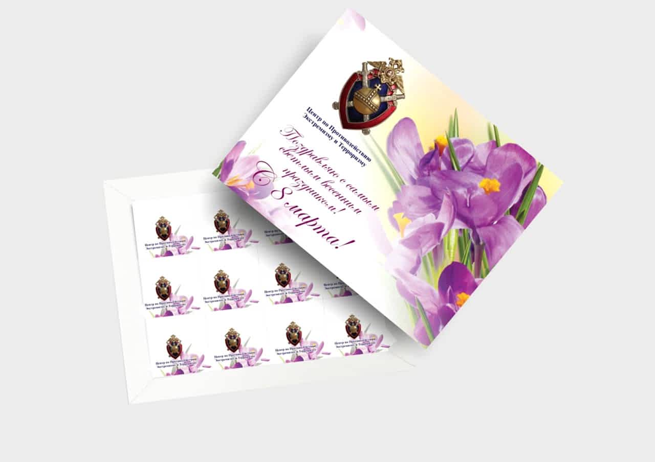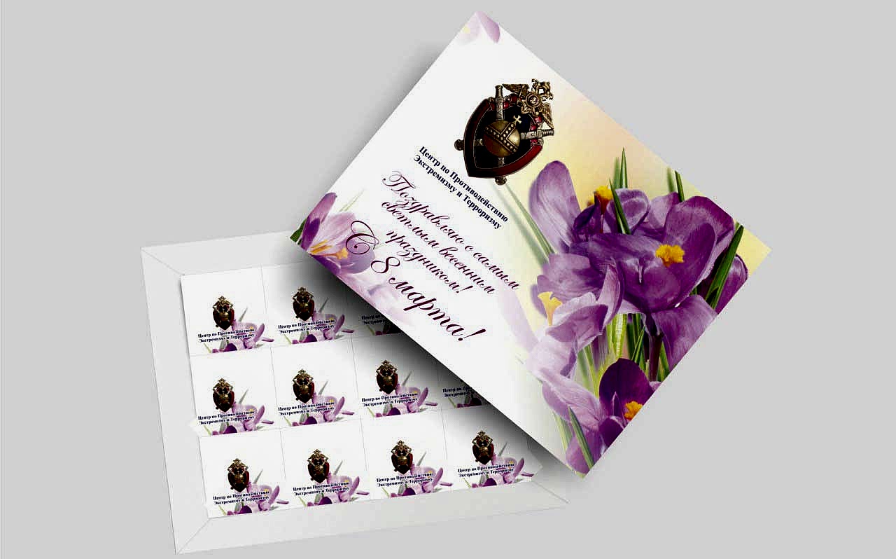 - Логотип печатается на обложке набораи на этикетке каждой шоколадки.